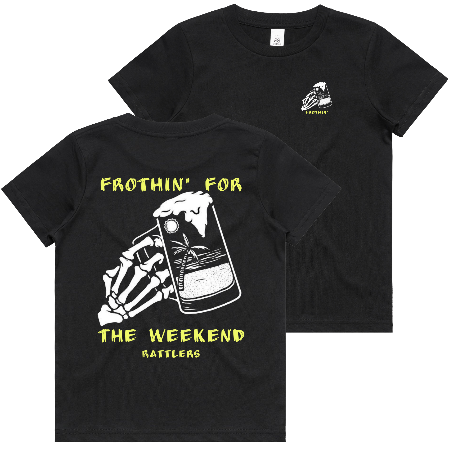 The Frothin' for the Weekend tee is part of Rattlers' signature collection of kids tees, designed to be practical, fun, and full of character.